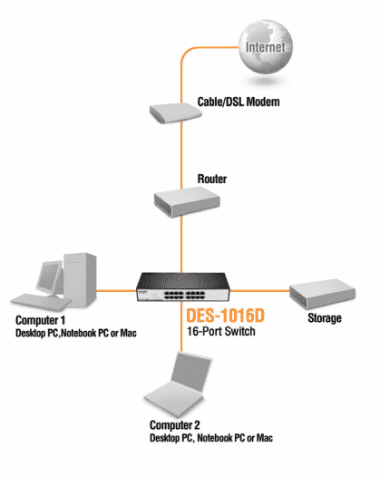 سوئیچ شبکه DES-1016D یک سوییچ غیرقابل مدیریت با 16 پورت 10/100 مگابیت بر ثانیه است که میتواند کارایی شبکه های Workgroup را افزایش دهد. این دستگاه قدرتمند به آسانی این امکان را فراهم میکند. که کاربران به پورت هایی با سرعت 10 مگابیت بر ثانیه تا 100 مگابیت بر ثانیه دسترسی داشته باشند.