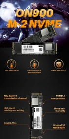 - سازگاری: حافظه SSD اوسکو ON900 M.2 NVME با اکثر مادربوردها و سیستمها سازگار است و دارای ابعاد استاندارد M.2 (معمولاً 2280) میباشد که به راحتی در کمتر از یک دقیقه نصب میشود.