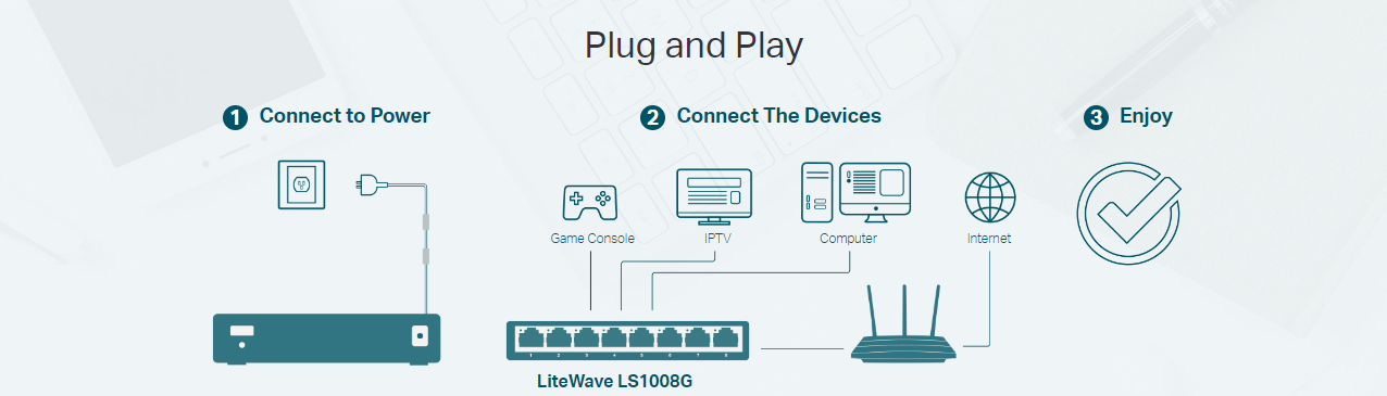 سوئیچ 8 پورت LS1008G مدیریت نشده سری TP-Link LiteWave راه آسان و مقرون به صرفه ای را برای گسترش شبکه سیمی شما ارائه می دهند. آنها آسان برای استفاده و قابل اعتماد هستند. این سوئیچ های plug-and-play، می توانید اتصالات شبکه خود را به چندین دستگاه فورا گسترش دهید. با پشتیبانی تمام پورت ها از Auto-MDI/MDIX، نیازی به نگرانی در مورد نوع کابل مورد استفاده نیست.