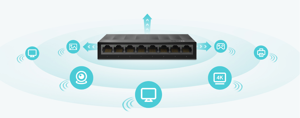 یکی از محصولات برند تی پی لینک (TP-LINK) سوئیچ شبکه غیر مدیریتی سوئیچ 8 پورت LS1008G می باشد. که با سرعت 10/100/1000 مگابیت بر ثانیه ؛ امکان تبادل پیوسته اطلاعات (دیتا) را بین چند دستگاه متصل به یک شبکه محلی (LAN) فراهم می‌ سازد. از ویژگی های LS1008G، می توان به پشتیبانی از استاندارد های IEEE 802.3u/3x/3ab/3i، صرفه جویی در مصرف انرژی به کمک فناوری Green Ethernet، ظرفیت 16Gbps، جدول مک آدرس 4K و قابلیت استفاده بدون نیاز به تنظیمات (Plug and Play) اشاره نمود.