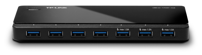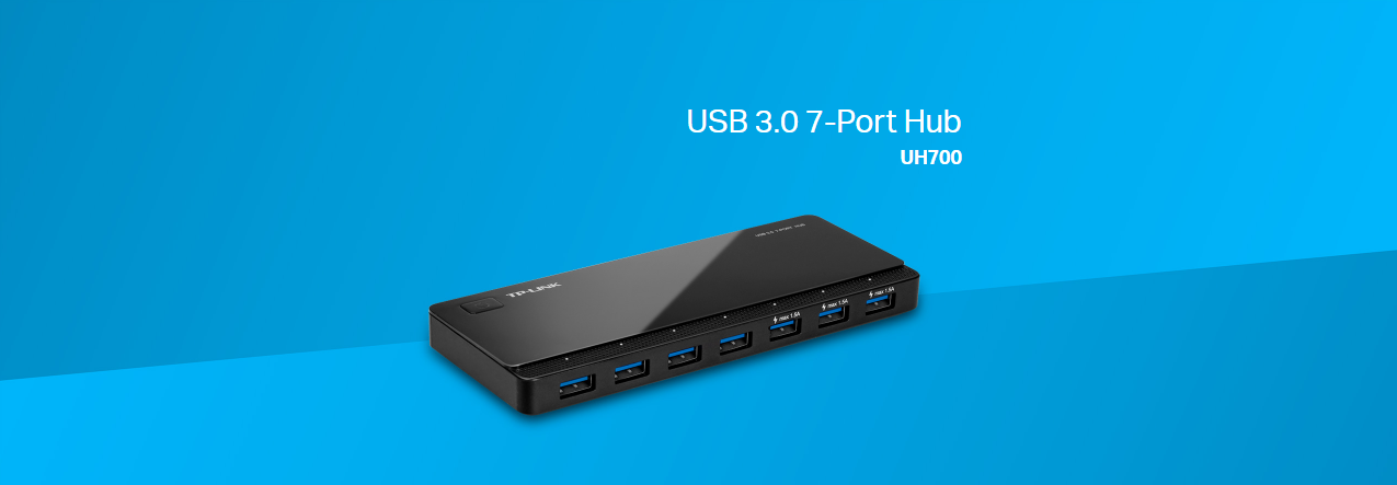 هاب 7 پورت USB 3.0 مدل UH700 از برند تی پی لینک (TP-LINK) می باشد که توسط پورت ورودی USB 3.0 و کابل یک متری درون بسته، به کامپیوتر یا نوت بوک متصل شده و توسط 7 پورت خروجی USB 3.0 هاب می تواند 7 پورت به درگاه های USB کامپیوتر یا نوت بوک اضافه نماید. سه پورت این دستگاه از قابلیت شارژ سریع (Fast Charge) پشتیبانی می کند. این پورت ها شدت جریان 1.5 آمپر را ارائه می دهند و می توان از آنها برای شارژ دستگاههای هوشمند استفاده کرد.